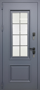 Остекленная уличная термодверь с металлобагетом и полимерной покраской серого цвета КД-1320